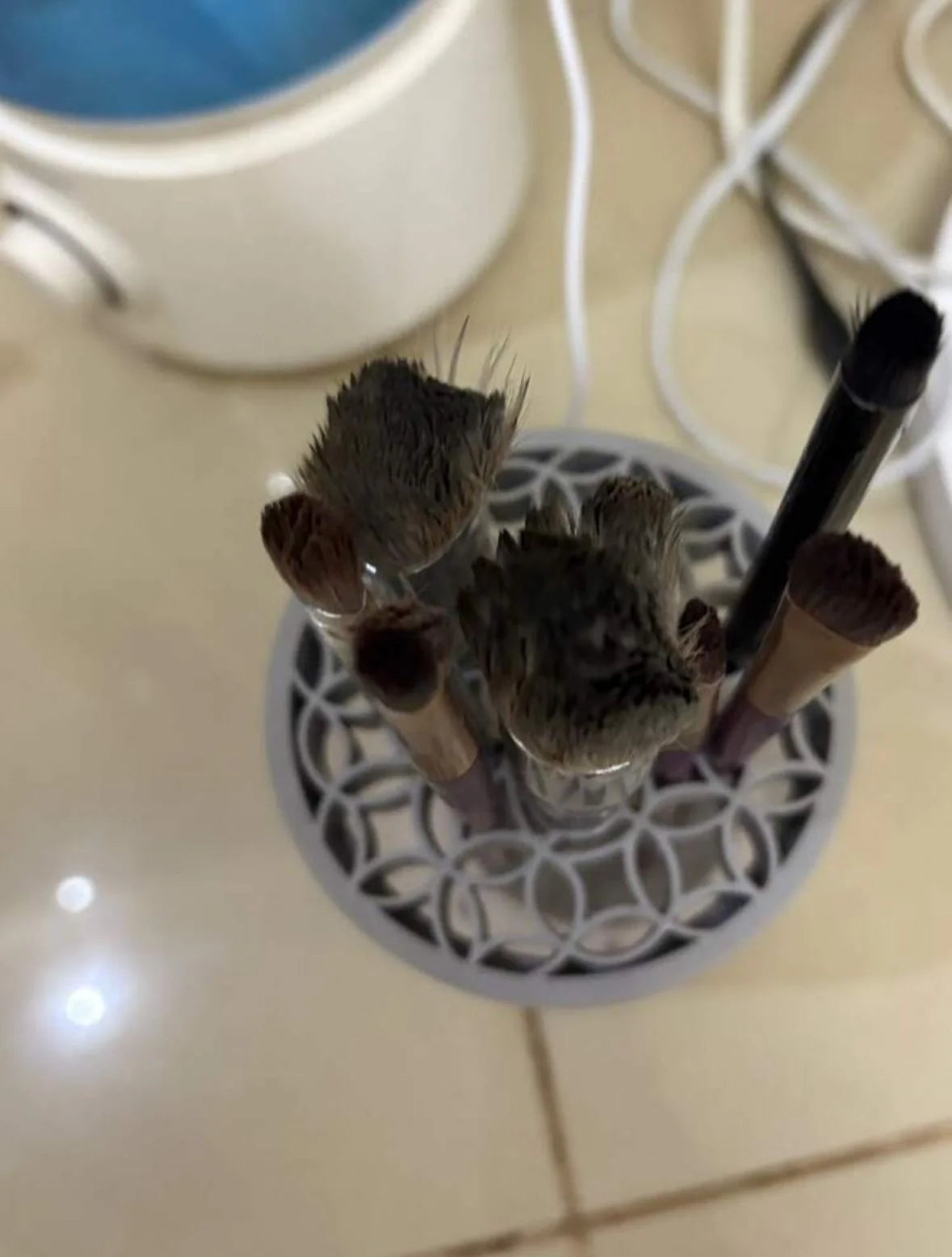 Sí. Tiene agujeros de silicona para poder colocar diferentes tamaños de brochas. Desde las más delgadas hasta las más gruesas.